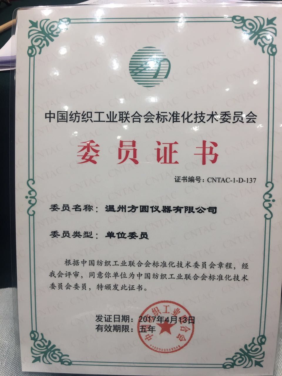 祝賀溫州方圓儀器有限公司成為中紡聯(lián)標準化技術(shù)委員會委員單位